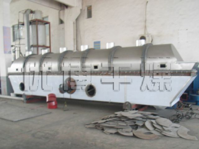 香料干燥機是由物料自進料進口進入機內(nèi),在振動力作用下,物料沿水平面流化床拋擲,向前連續(xù)運動,熱風(fēng)向上穿過流化床同濕物料換熱后,濕空氣經(jīng)旋風(fēng)分離器除塵后由排風(fēng)1:3排出.干...
